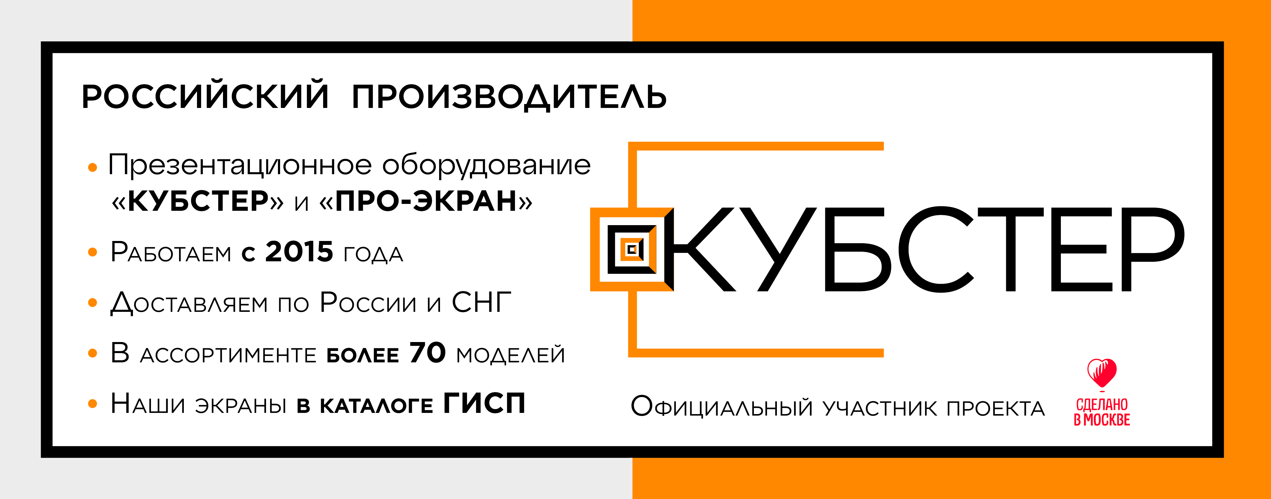 - Под брендами КУБСТЕР мы изготавливаем экраны для проекторов, магнитно-маркерные и меловые доски, флипчарты, доски для заметок