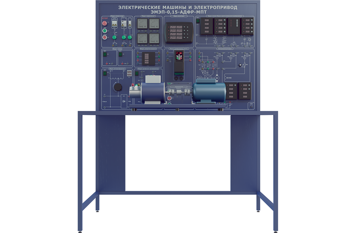 Лабораторная установка по изучению электрических машин и элек-тропривода 0,15квт с универсальной машиной переменного тока (ЭМЭП-0,15-АДФР-МПТ)