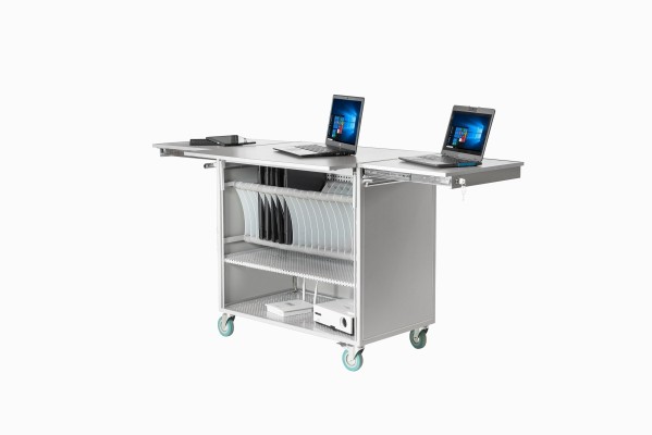 Мобильный компьютерный класс ICLab v 2.0 состоит из двух или трех модулей, поставленных друг на друга и размещенных на платформе с колесами. Также модули можно использовать в стационарном положении как шкаф, установив на пол или повесив на стену. Модули имеют заднюю сплошную и переднюю со стеклом дверцы, закрывающиеся на замок. Мобильный класс одновременно является хранилищем и зарядной станцией оборудования. Тележка имеет специальную конструкцию для удобного использования и транспортировки по территории учебного заведения. Металлический корпус надежно защищает устройства от повреждений. Отдельные перегородки внутри модулей обеспечивают безопасное хранение каждого устройства.