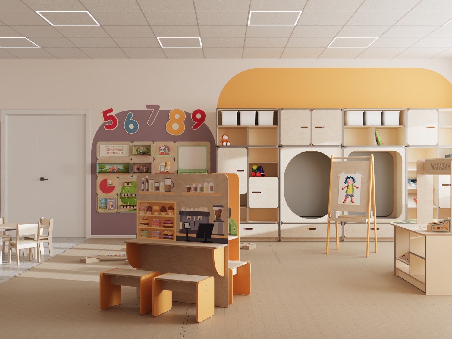 - Вариативность. Пространство грамотно разделено на зоны для игр, обучения, творчества и отдыха.