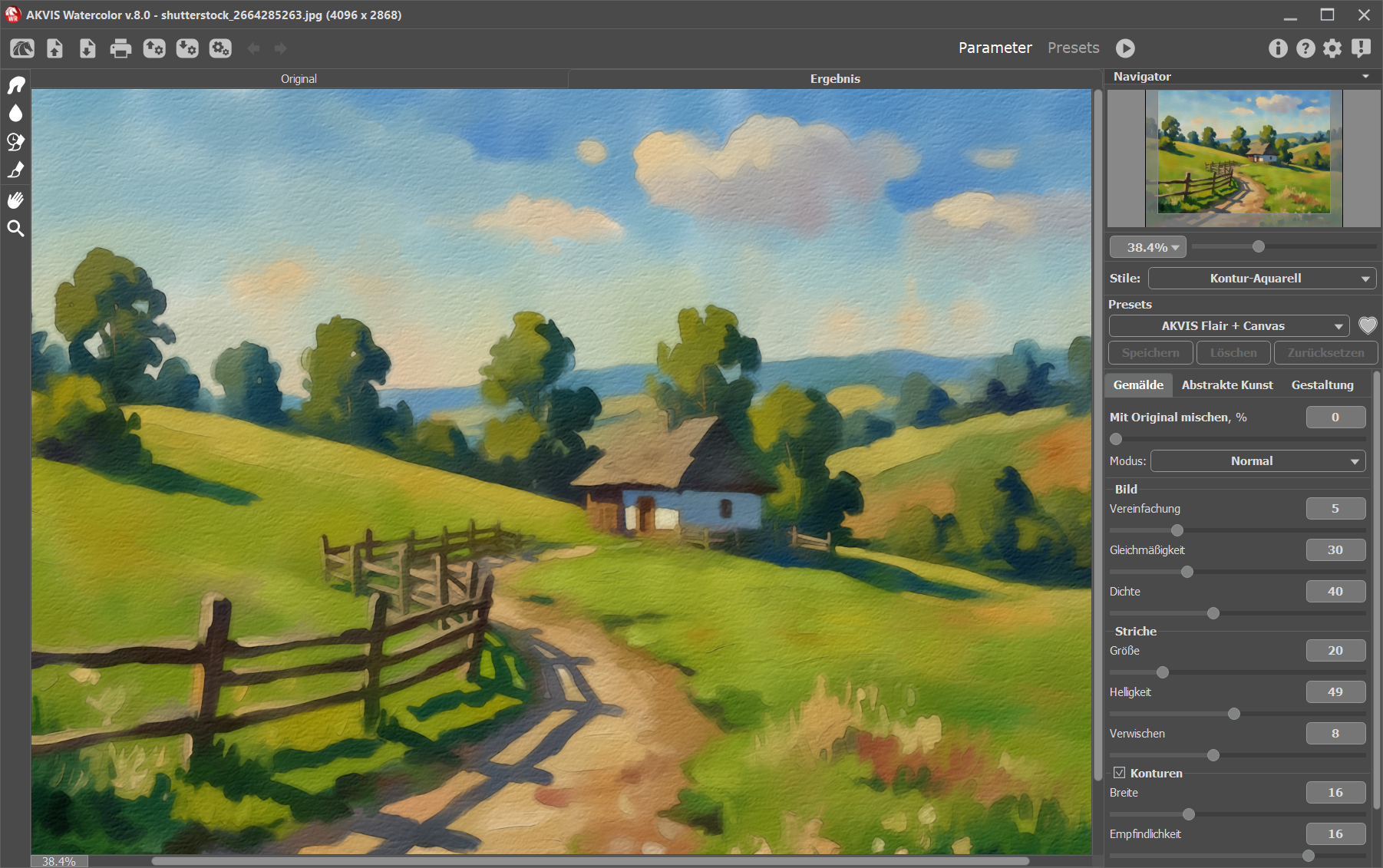Коллекция предустановок. Встроенные шаблоны с предустановленными настройками позволяют быстро получить результат в разных стилях: от лёгкой акварельной тонировки до экспрессивных, насыщенных работ.